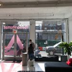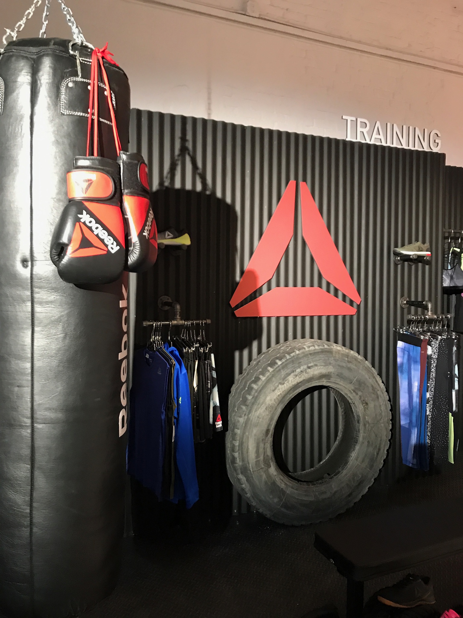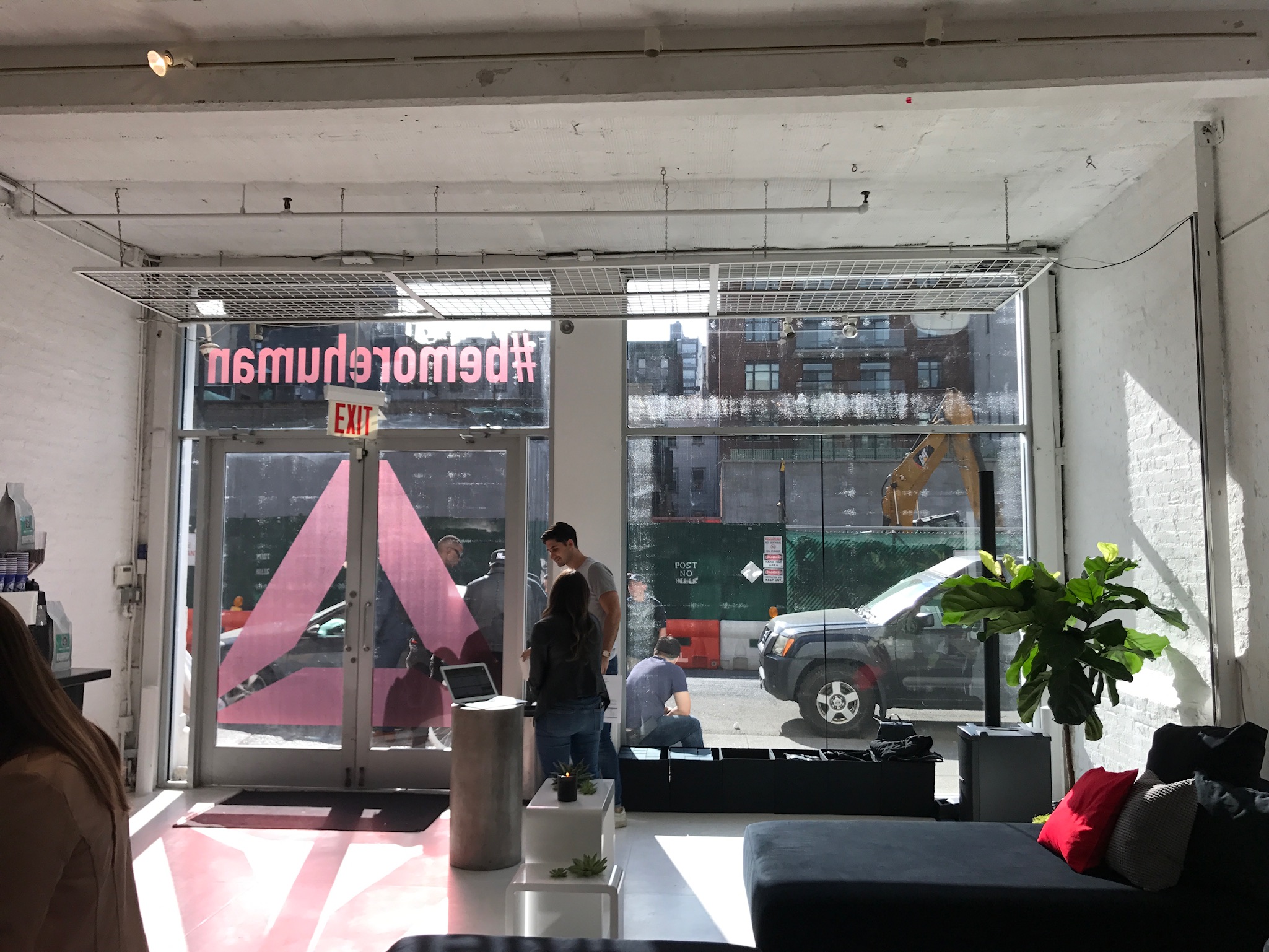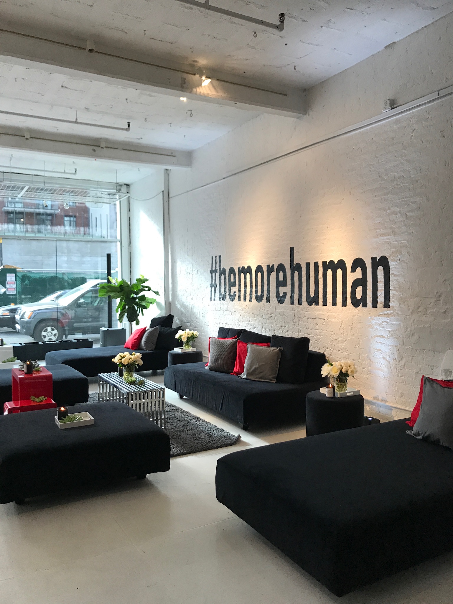 Window wrap embeds this pop up in the block for the duration of the event, and affords comfort to attendees. Large scale floor and wall graphics unify sourced props and product elements.